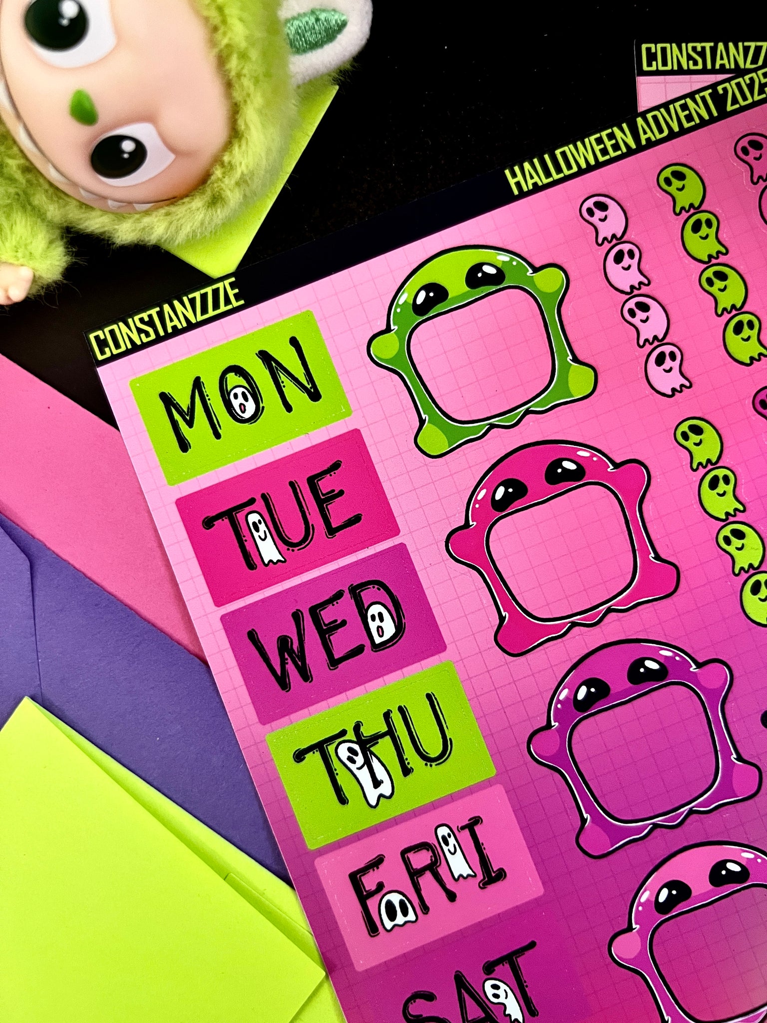 This listing is for either all sheets shown or individual sheets from Day 10 of my 2025 Halloween Advent! All art is hand drawn by me with love :)
