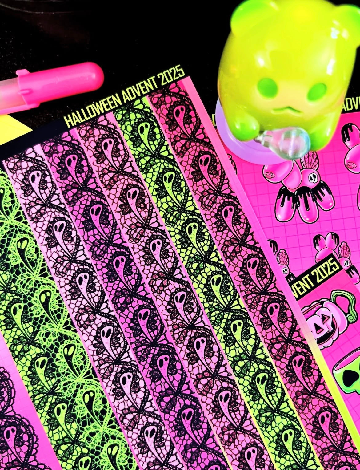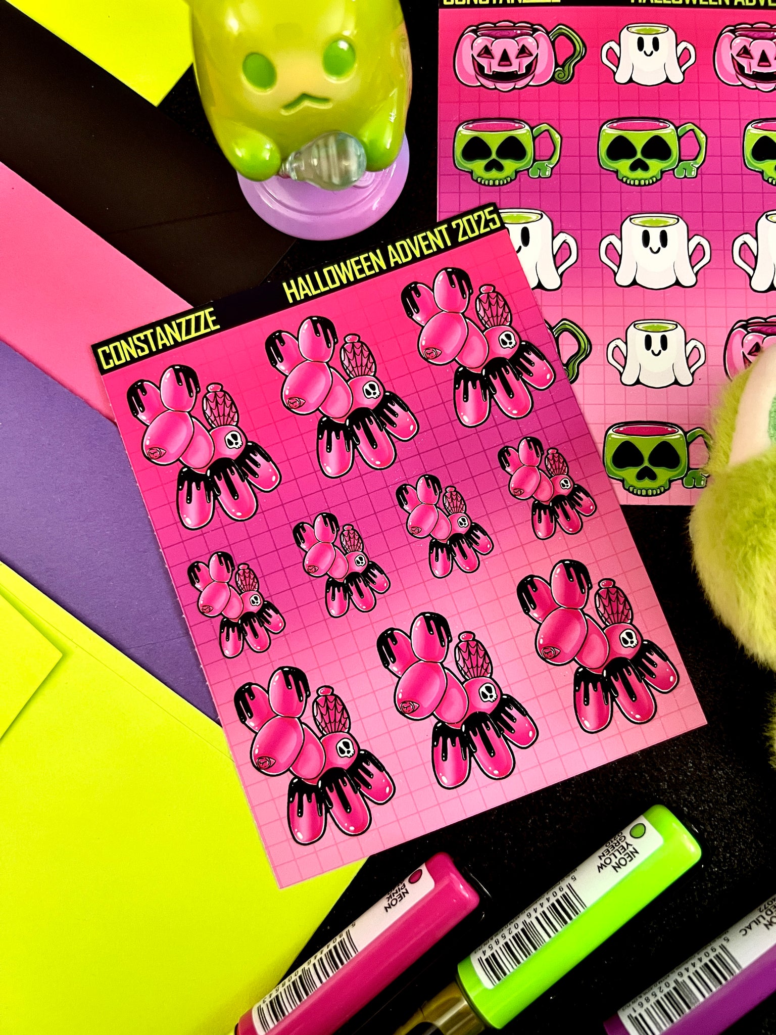 This listing is for either all sheets shown or individual sheets from Day 3 of my 2025 Halloween Advent! All art is hand drawn by me with love :)