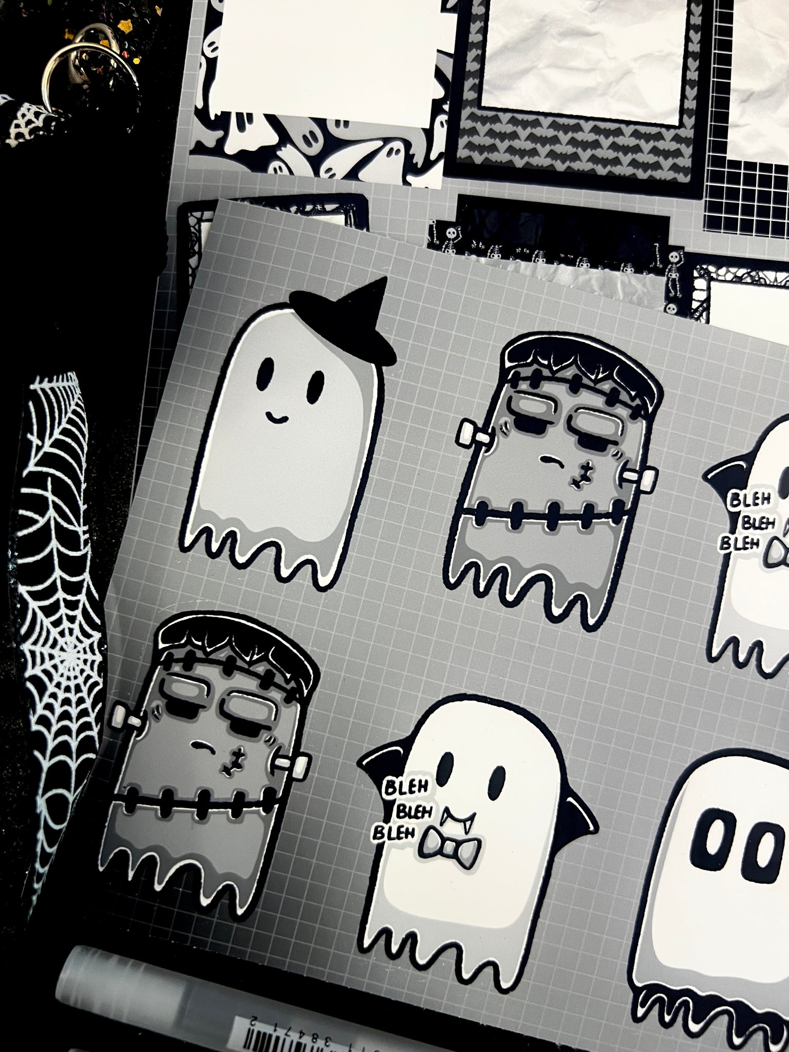 This listing is for either all sheets shown or individual sheets from Day 11 of my 2025 Halloween Advent! All art is hand drawn by me with love :)