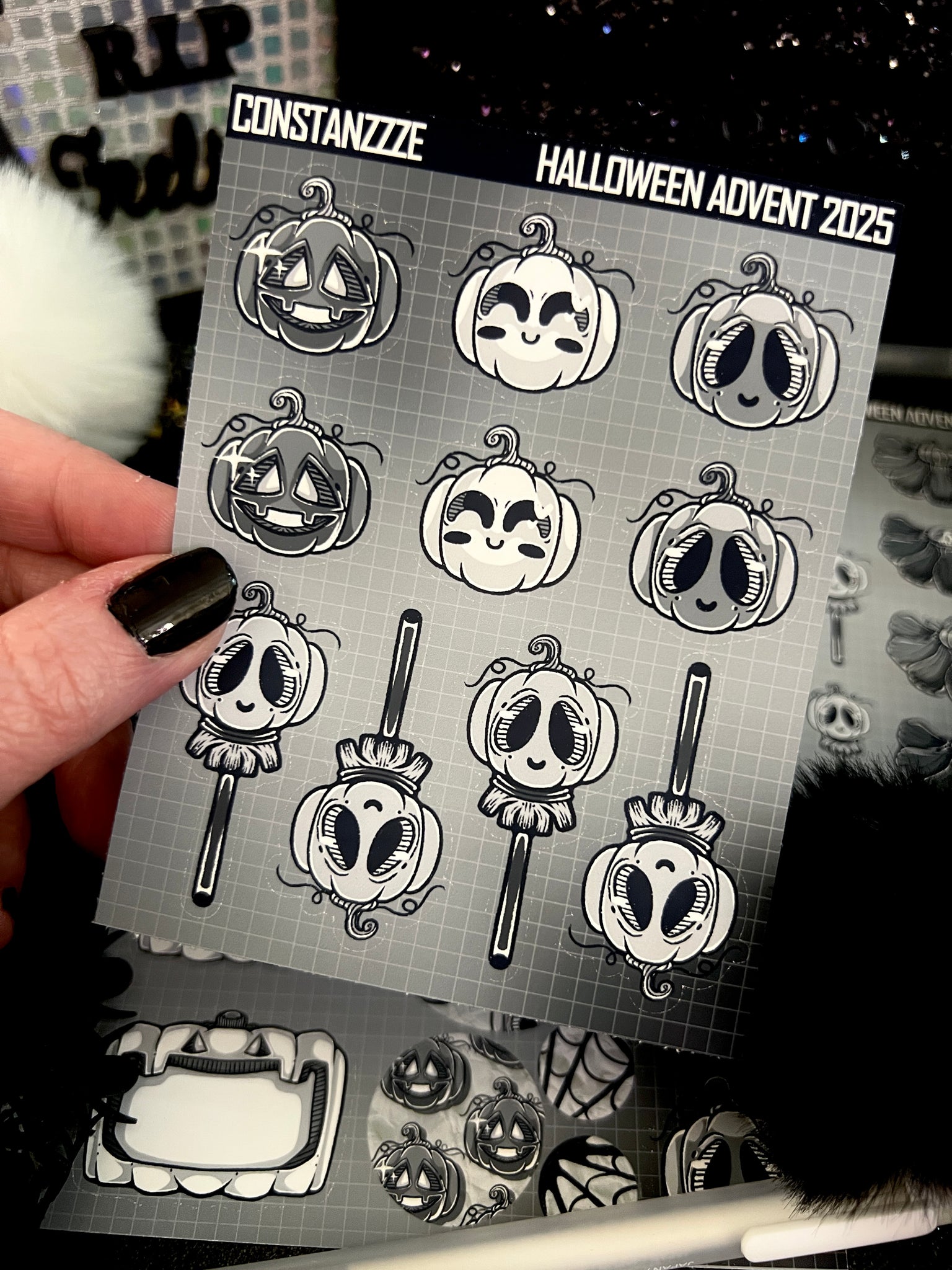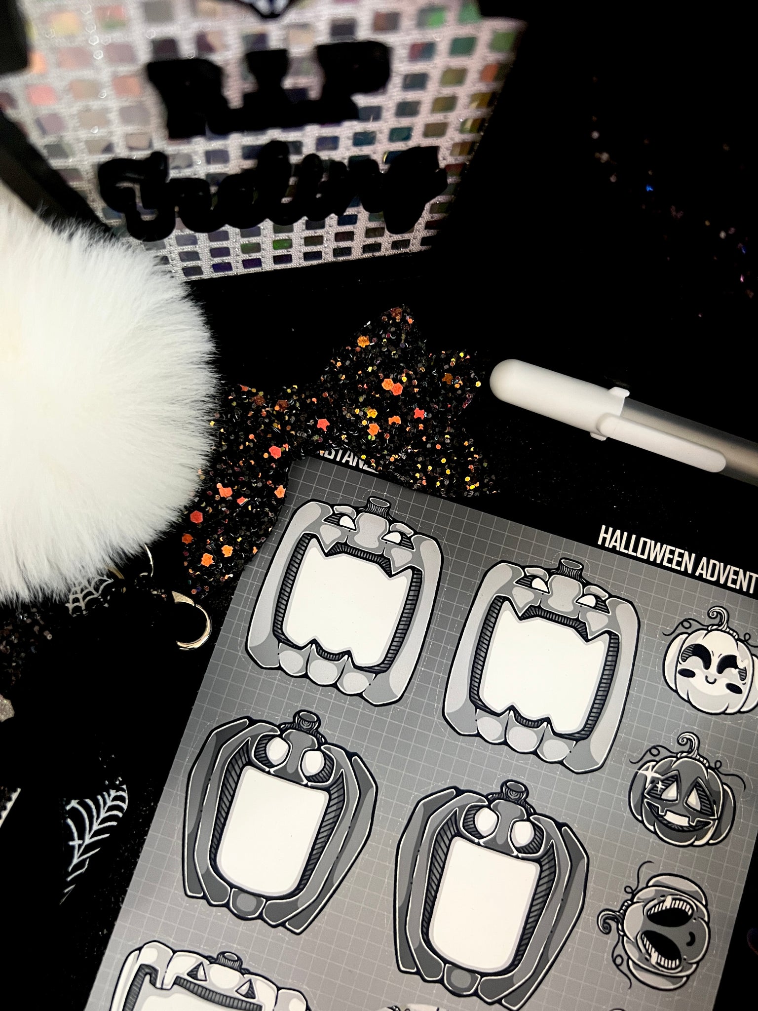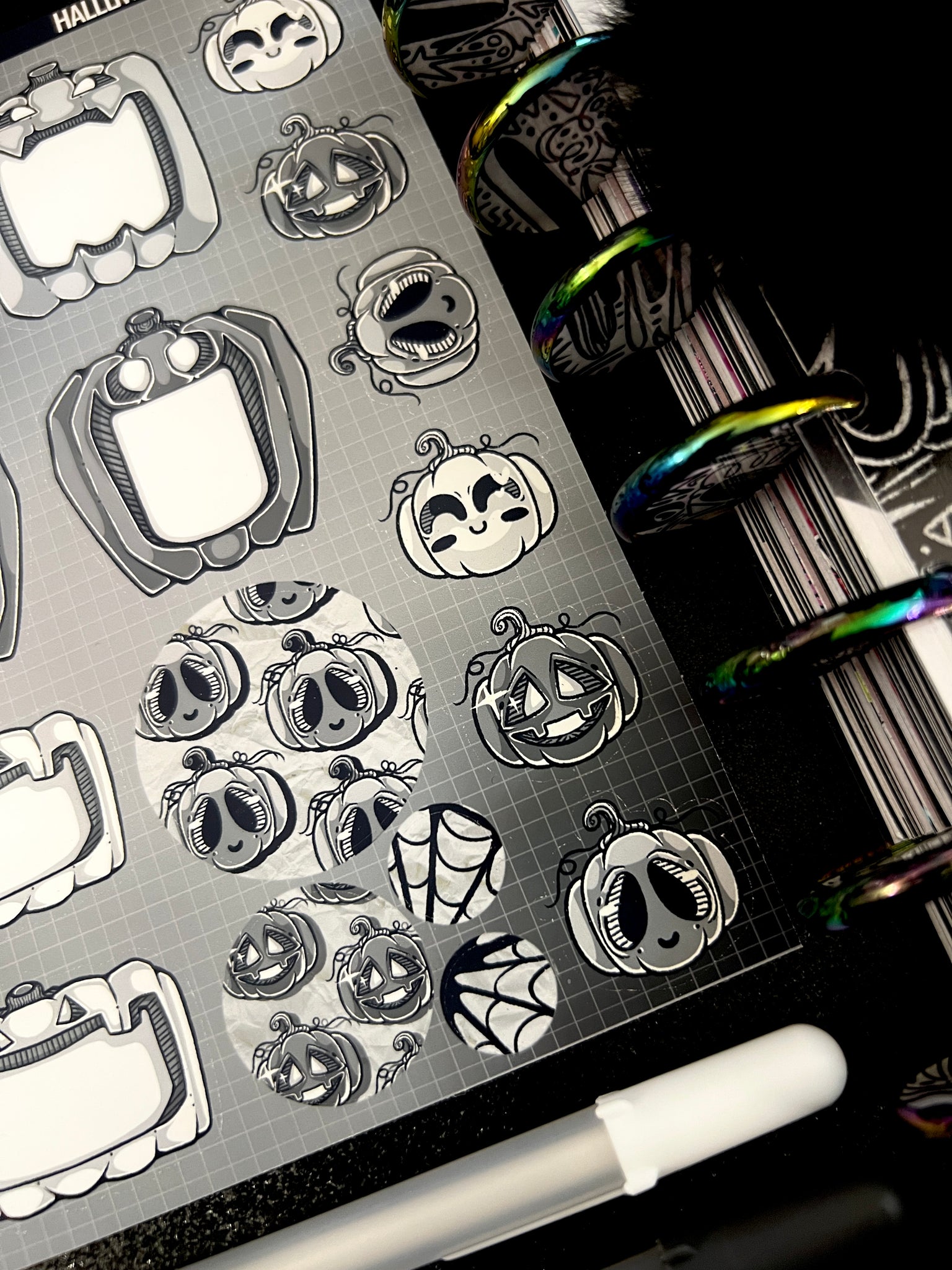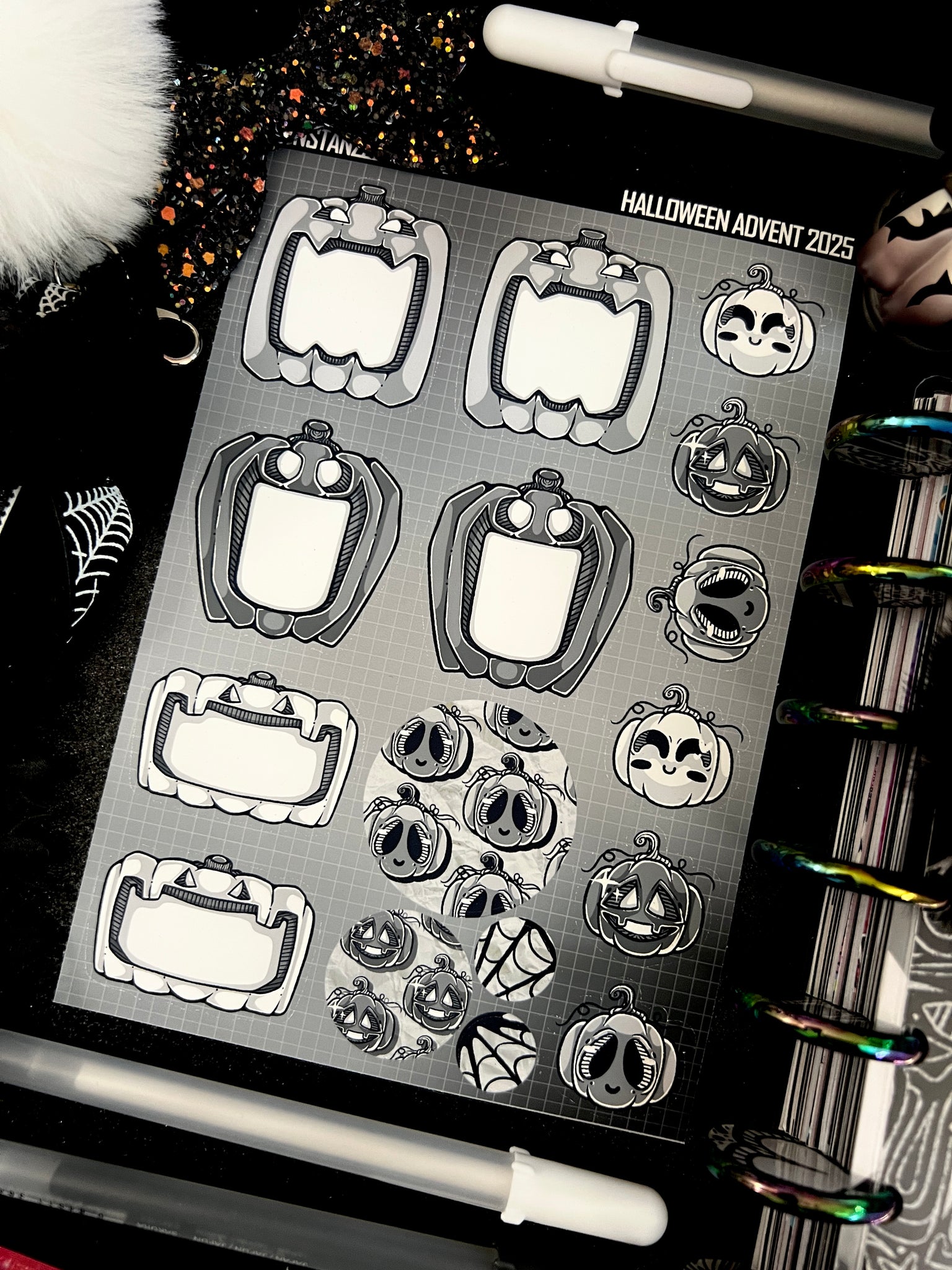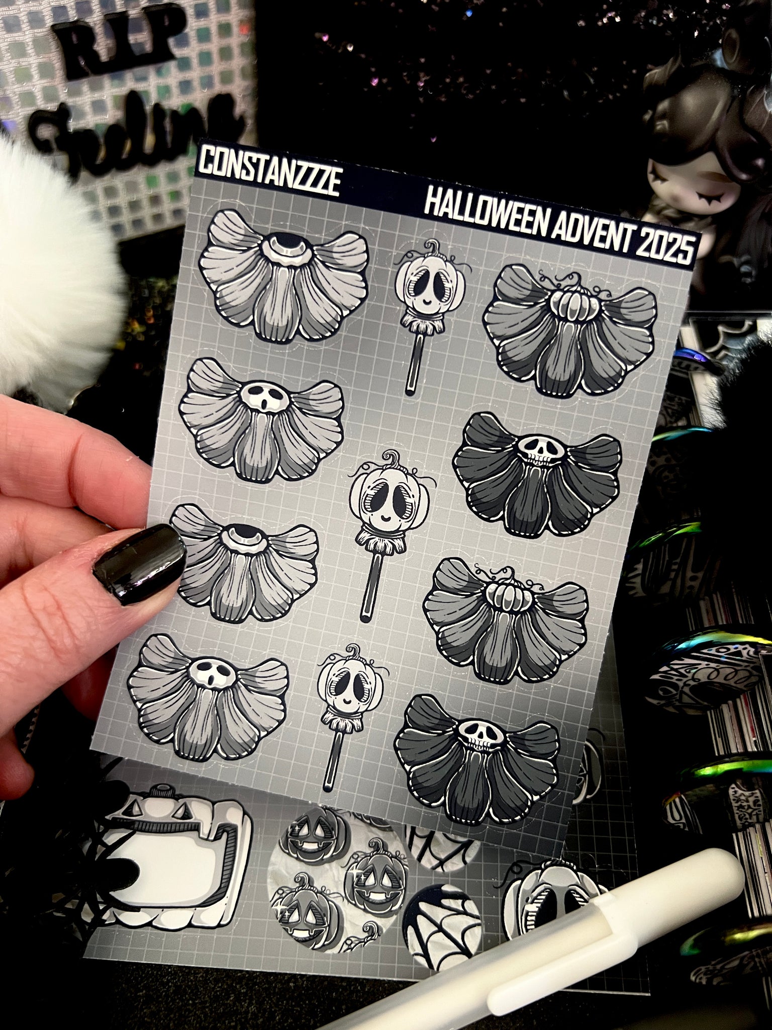 This listing is for either all sheets shown or individual sheets from Day 6 of my 2025 Halloween Advent! All art is hand drawn by me with love :)