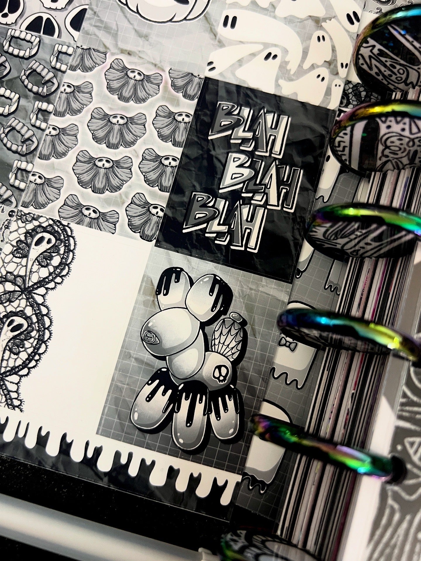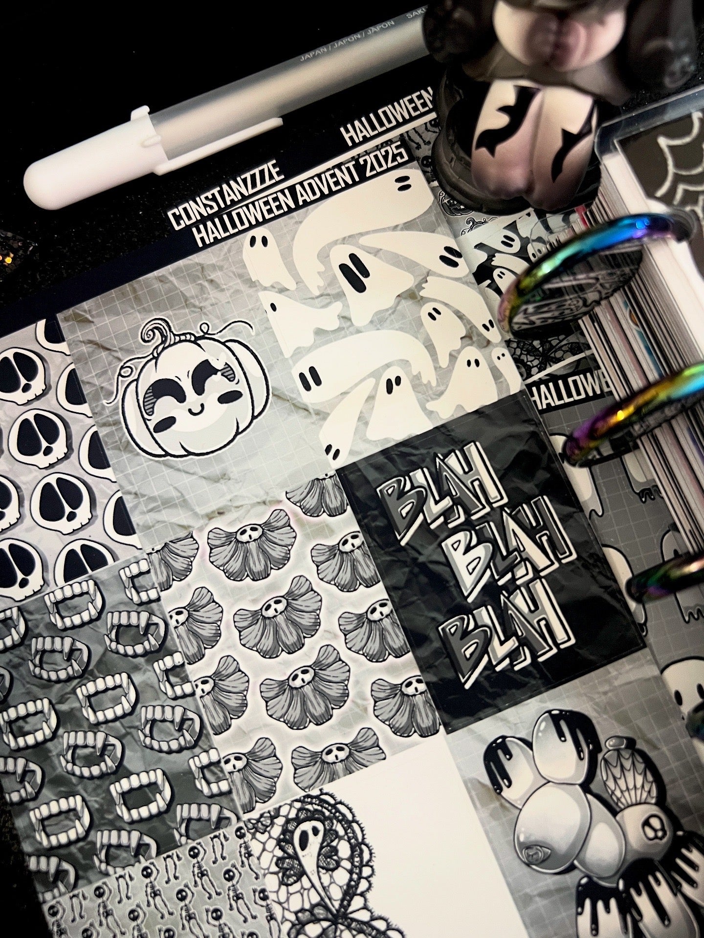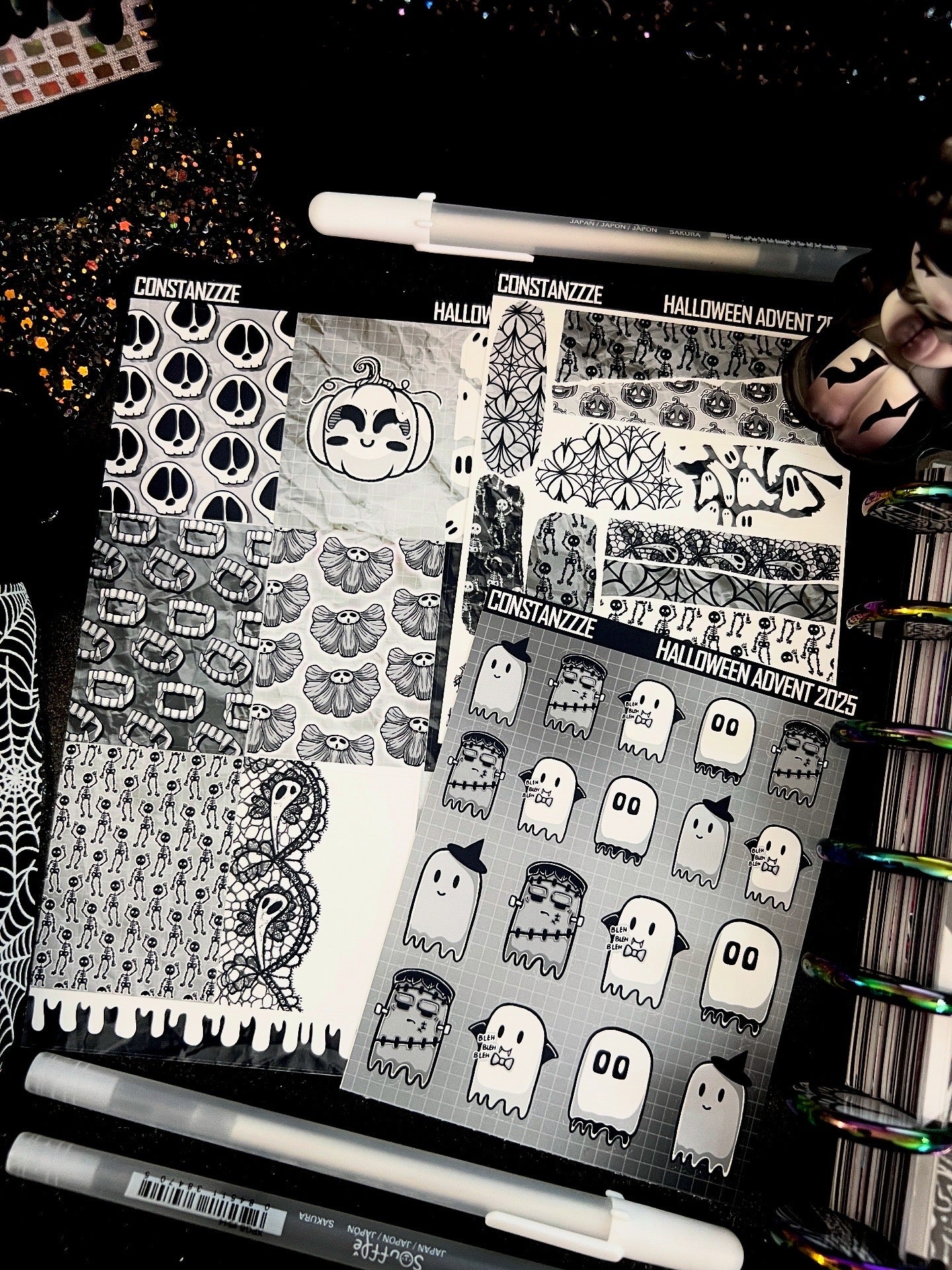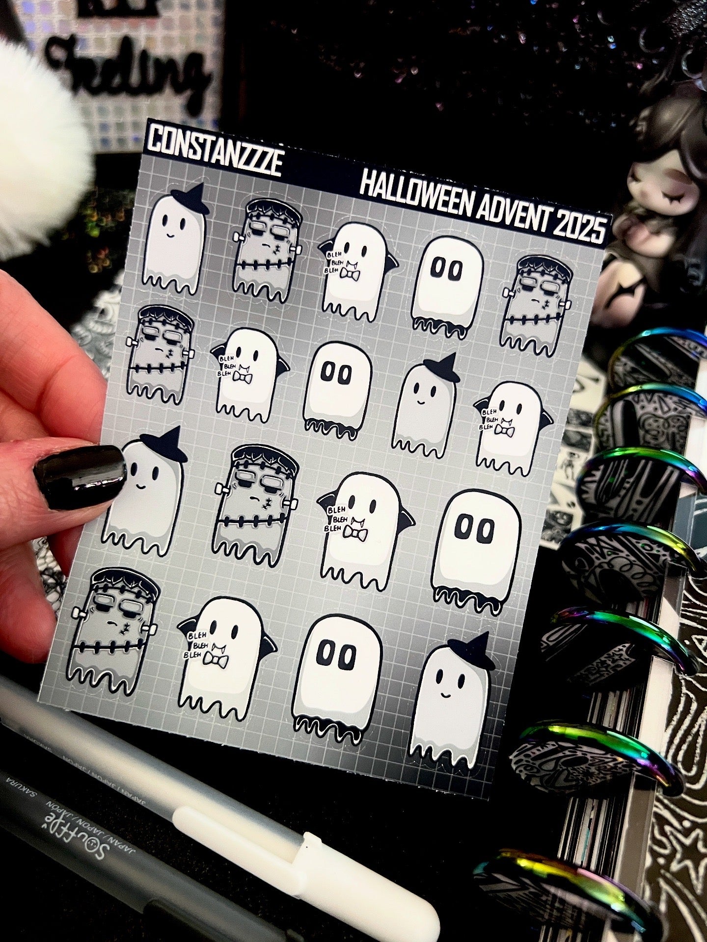 This listing is for either all sheets shown or individual sheets from Day 8 of my 2025 Halloween Advent! All art is hand drawn by me with love :)